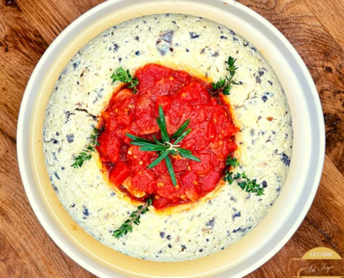 CRESPEOU ET CONCASSE DE TOMATES A L’HUILE H DE LEOS FRUITÉ VERT CARRE D’HERBES – CHEF CÉDRIC BRUN