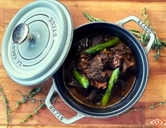 NAVARIN RAGOUT D’AGNEAU AUX MORILLES A L’HUILE H DE LEOS FRUITÉ VERT