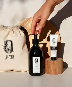 Présenté dans un coffret au design raffiné, ce duo iconique est composé du Savon Essentiel liquide et de la Lotion Veloutée pour les mains. Une belle idée cadeau, alliant soin, sensorialité et élégance. Enrichis en huile d’olive vierge extra et en extrait de feuilles d’olivier issus du Domaine Leos en Provence, ces deux soins apportent à la peau douceur, confort et protection au quotidien.