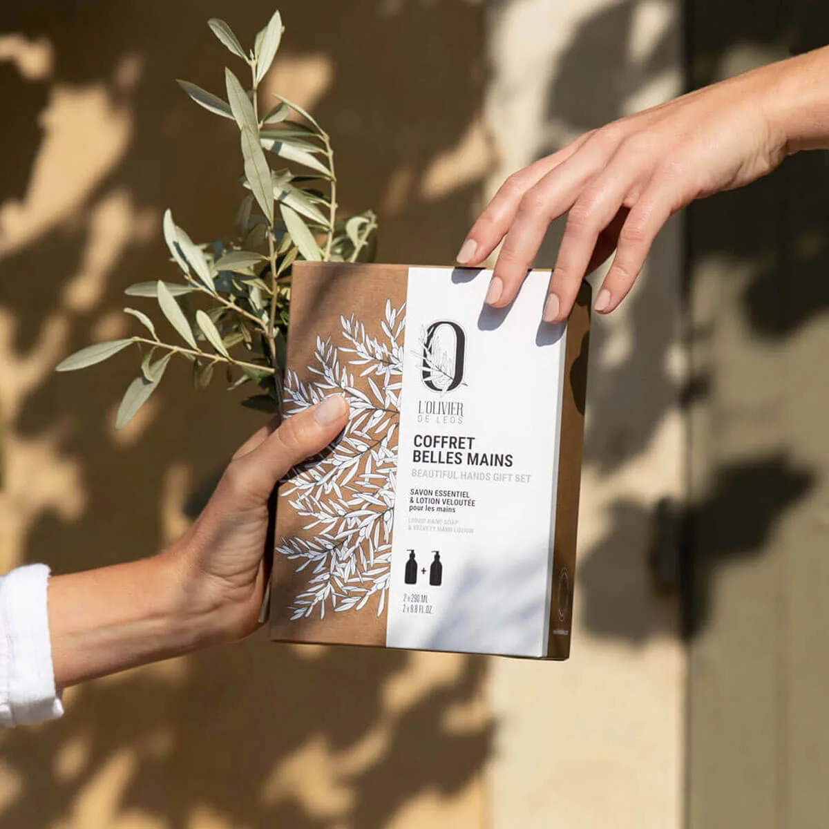 Le cadeau idéal : un duo de soins pour les mains L’Olivier de Leos (savon et lotion hydratante) réuni dans un élégant coffret pour chouchouter la peau au quotidien.