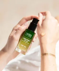 Les 2 produits sont présentés dans des flacons en verre avec pompe-dispenser pour une utilisation pratique. Commencez par vous laver les mains avec le Savon Essentiel, puis appliquez la Lotion Veloutée en massant délicatement jusqu’à absorption complète.