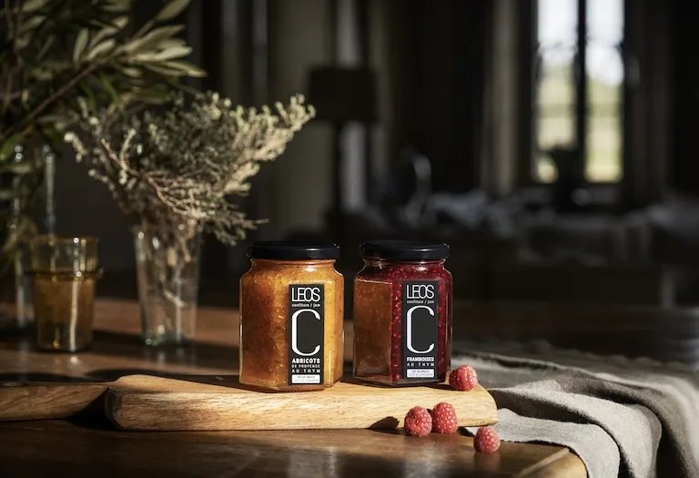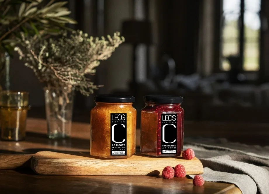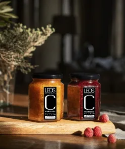 Confiture extra Leos Framboises au thym (328 g) – Confiture extra Leos Abricots de Provence au thym (323 g)