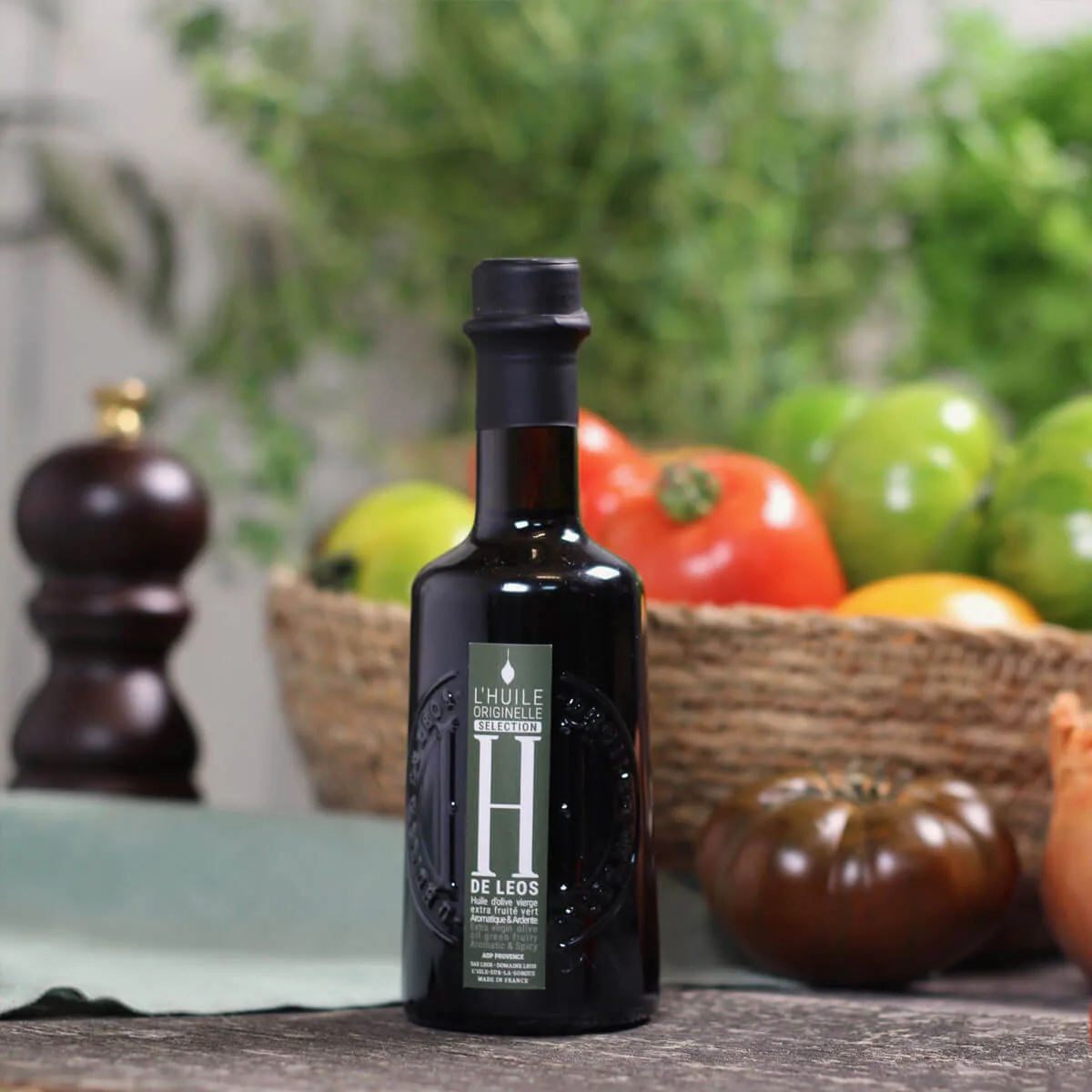 Huile H de Leos fruité vert : une huile intense, à consommer tout au long des repas, en privilégiant les utilisations crues comme huile de finition pour préserver les arômes sur tous types d’aliments et de plats.