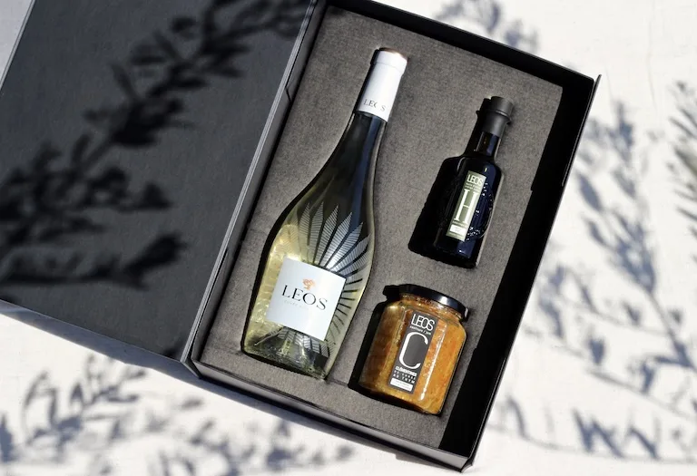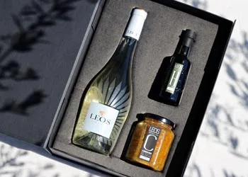 Un coffret-cadeau premium qui réunit trois expressions complémentaires de notre terroir et de notre savoir-faire : un vin blanc Leos Cuvée Augusta, une huile d’olive H de Leos fruité vert et une confiture extra de Clémentines de Corse. Le vin apporte une trame élégante et précise, l’huile une énergie végétale franche, la confiture l’éclat « zesté » de l’agrume. L’ensemble compose un parcours gustatif complet, du salé au sucré.