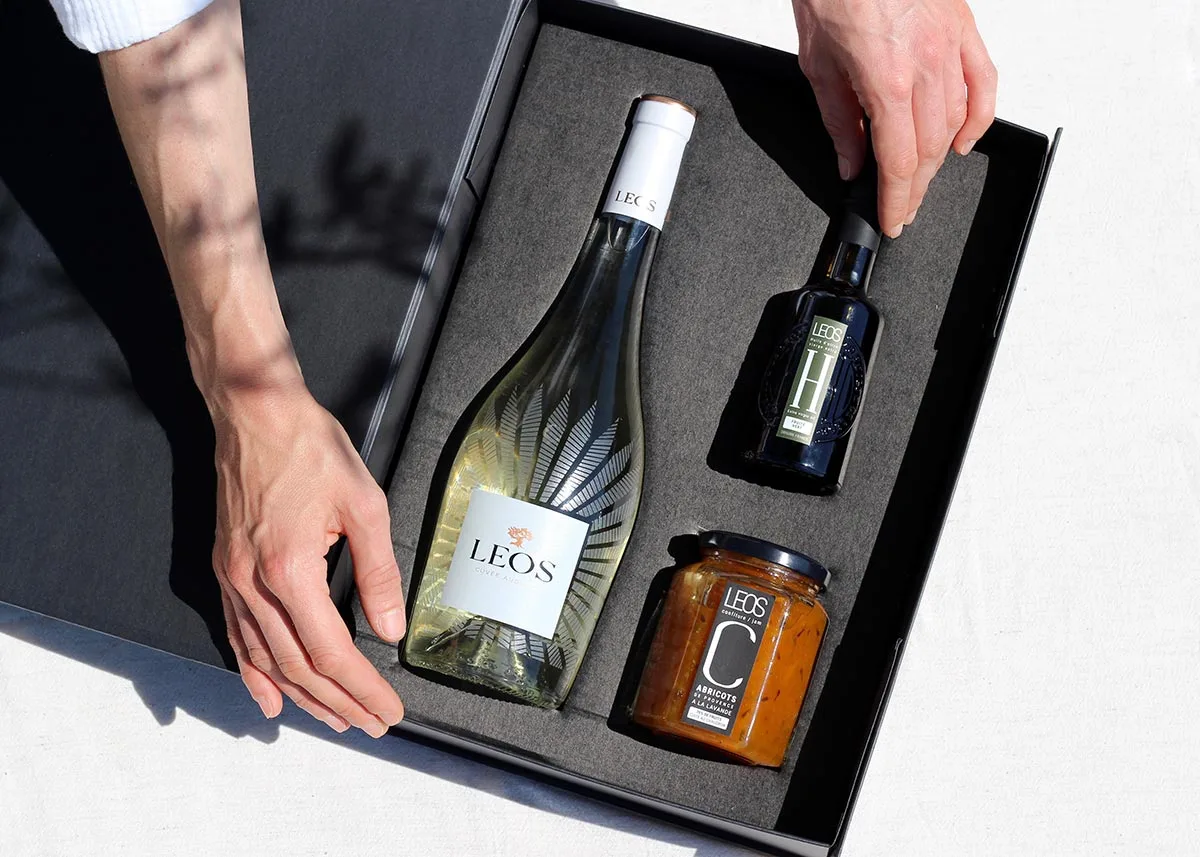 Un coffret-cadeau premium présentant une sélection de 3 produits Leos symboles de notre région : vin blanc bio, une huile d’olive au goût « fruité vert » et une confiture d’abricots de Provence. Vin blanc Leos bio : combinant des cépages emblématiques de notre région, il révèle un profil solaire et raffiné : à la fois généreux et aérien. Vin blanc Leos bio : nez délicat, bouquet intense de fleurs blanches relevées par des notes d’agrumes mûrs, finale nette, persistante et d’une grande élégance, héritage d’un élevage soigné en fût. Vin blanc Leos bio : avec son intensité aromatique, sa richesse et sa fraîcheur, c’est un vin de gastronomie qui sublime aussi bien l’apéritif qu’un repas d’exception. Quelle est l’origine du nom Augusta ? Qu’est-ce qui définit et caractérise une huile d’olive de type « fruité vert » ? Qu’est-ce qu’une confiture artisanale ? INFORMATIONS TECHNIQUES – Présentation : calage de trois produits Leos présentés dans un coffret-cadeau premium en carton renforcé avec fermeture aimantée.