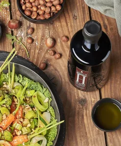 Huile H de Leos fruité mûr : élaborée exclusivement à partir d’olives de variétés Aglandau récoltées tardivement. La trituration est réalisée le jour même de la cueillette pour garantir une fraîcheur optimale.
