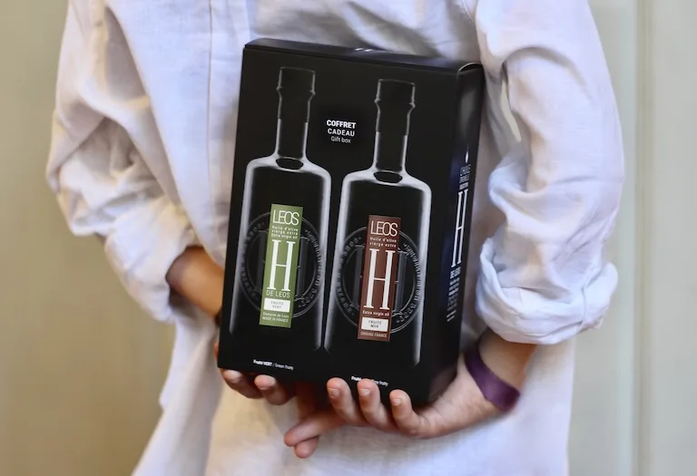Un coffret-découverte de deux huiles H de Leos aux goûts « fruité vert » et « fruité mûr », à offrir ou à mettre sur une table pour les amoureux d’huiles d’olive d’exception.