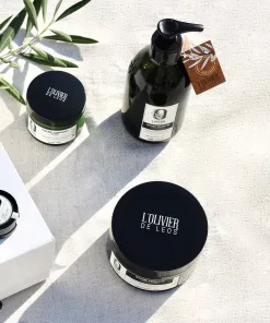 Composé de 4 soins naturels contenant de l’huile d’olive et extrait de feuilles d’olivier du Domaine de Leos , il hydrate, nourrit et réconforte la peau de la tête aux pieds. Un véritable allié pour les amateurs de douceur et de confort.