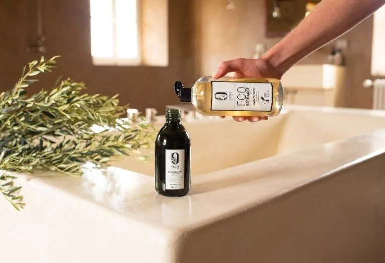 Cette recharge écoresponsable prolonge la durée de vie de votre savon essentiel liquide pour les mains, fabriqué selon la recette traditionnelle du savon de Marseille. Enrichi en huile d’olive vierge extra et en extrait de feuilles d’olivier du Domaine de Leos, il nettoie la peau en douceur tout en la laissant subtilement parfumée.