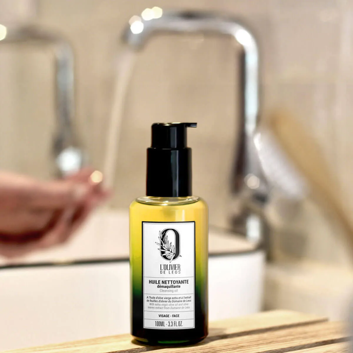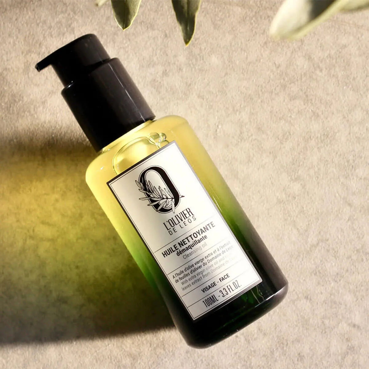 Transformez votre routine de nettoyage en un vrai moment de soin. Résultat : une peau propre, souple, lumineuse prête à recevoir les soins. Utilisez notre huile nettoyante démaquillante : Comment l’utiliser ? Pratique et rapide : grâce à son flacon pompe, vous dosez juste ce qu’il faut ! Idéal aussi sous la douche pour les routines express. Enrichie en huile d’olive vierge extra et en extrait de feuilles d’olivier du Domaine de Leos. Liste d’ingrédients complète : CAPRYLIC/CAPRIC TRIGLYCERIDE, HELIANTHUS ANNUUS (SUNFLOWER) HYBRID OIL*, POLYGLYCERYL-4 OLEATE, OLEA EUROPAEA (OLIVE) FRUIT OIL, SESAMUM INDICUM (SESAME) SEED OIL*, SIMMONDSIA CHINENSIS (JOJOBA) SEED OIL*, OLEA EUROPAEA (OLIVE) LEAF EXTRACT, HELIANTHUS ANNUUS (SUNFLOWER) SEED OIL, PARFUM (FRAGRANCE), TOCOPHEROL.*Ingrédients issus de l’agriculture biologique Est-ce que cette huile démaquillante peut remplacer mon nettoyant habituel ? Est-ce que l’huile laisse un film gras sur la peau ? Puis-je utiliser l’huile démaquillante sur les yeux et les lèvres ? INFORMATIONS TECHNIQUES Actifs Leos : huile d’olive vierge extra et feuilles d’olivier