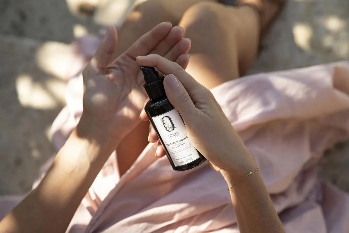 L’Huile sèche se distingue par sa capacité à pénétrer rapidement la peau, grâce à des ingrédients spécialement sélectionnés, sans laisser de film gras en surface. Contrairement à une huile classique, elle ne nécessite aucun temps de pause : vous pouvez vous habiller aussitôt après l’application.