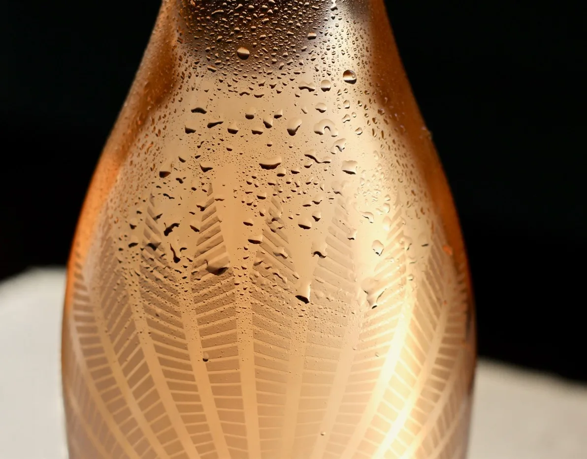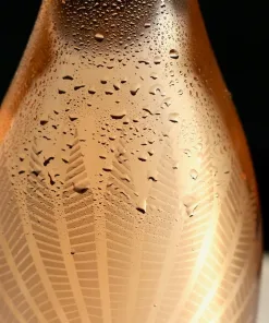 La sérigraphie est directement appliquée sur le verre, ce qui élimine l’usage de papier, d’adhésif ou de film plastique. Cela réduit les déchets à la production et facilite le recyclage des bouteilles, tout en garantissant une grande durabilité dans le temps. Grâce à sa sérigraphie, la bouteille conserve tout son éclat même dans un seau à glace, sans risque de décollement d’étiquette