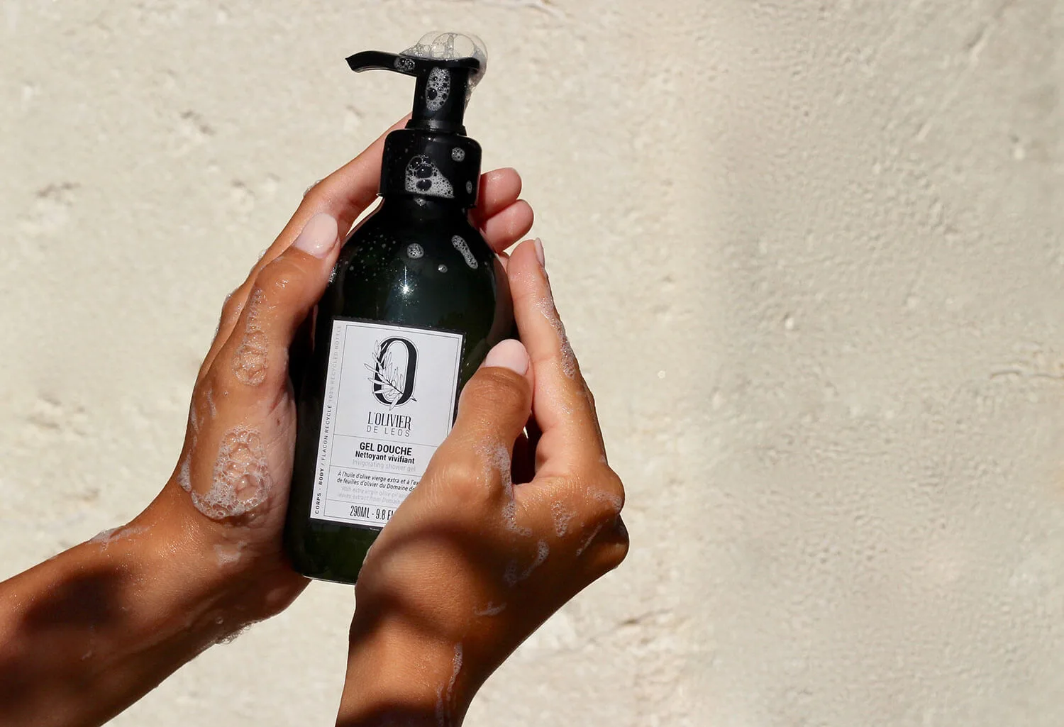 Déposez une noisette de gel sur la peau préalablement humidifiée. Faites délicatement mousser pour libérer ses notes fraîches d’olivier et de verveine, puis rincez abondamment.