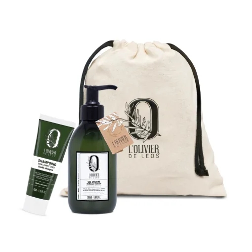 Découvrez les vertus de l’olivier à travers cette offre découverte : un rituel d’hygiène complet pour le corps et les cheveux, composé d’un gel douche et d’un shampoing aux formules naturelles et délicatement parfumées. Présentés dans un élégant pochon en coton bio, ces soins sensoriels séduisent par la senteur verveine fraîche et vivifiante.