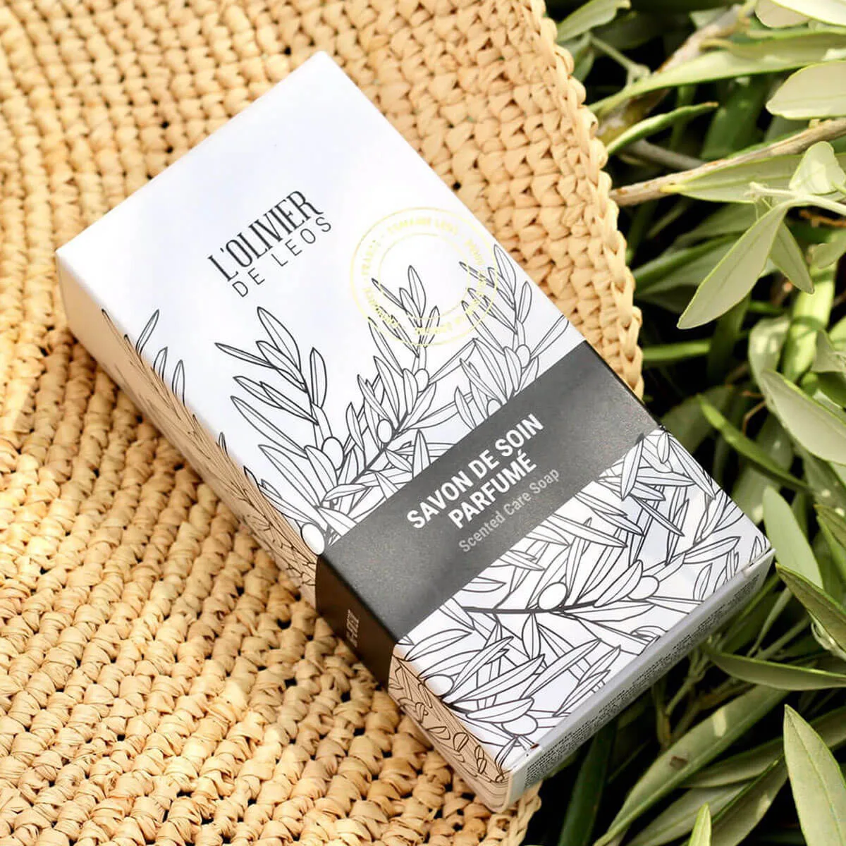 Un savon solide naturel, doux et décoratif. Faites mousser le savon entre vos mains mouillées ou directement sur la peau, puis rincez à l’eau claire. Sa mousse douce nettoie efficacement les mains, le corps, et même le visage. Enrichi en huile d’olive vierge extra et en extrait de feuilles d’olivier du Domaine de Leos. Liste d’ingrédients complète : SODIUM OLIVATE, SODIUM COCOATE, AQUA (WATER), SODIUM PALMITATE, SODIUM STEARATE, PARFUM (FRAGRANCE), GLYCERIN, SODIUM CHLORIDE, OLEA EUROPAEA (OLIVE) FRUIT OIL, PRUNUS AMYGDALUS DULCIS (SWEET ALMOND) OIL*, TETRASODIUM GLUTAMATE DIACETATE, LINALOOL, LIMONENE, GERANIOL, SODIUM HYDROXIDE, BENZYL SALICYLATE, OLEA EUROPAEA (OLIVE) LEAF EXTRACT Qu’est-ce qu’un savon surgras, et en quoi est-il différent d’un savon classique ? À qui ce savon est-il destiné ? Convient-il aux peaux sensibles ? Comment conserver mon savon solide pour qu’il dure plus longtemps ? INFORMATIONS TECHNIQUES Actifs Leos : huile d’olive vierge extra et feuilles d’olivier